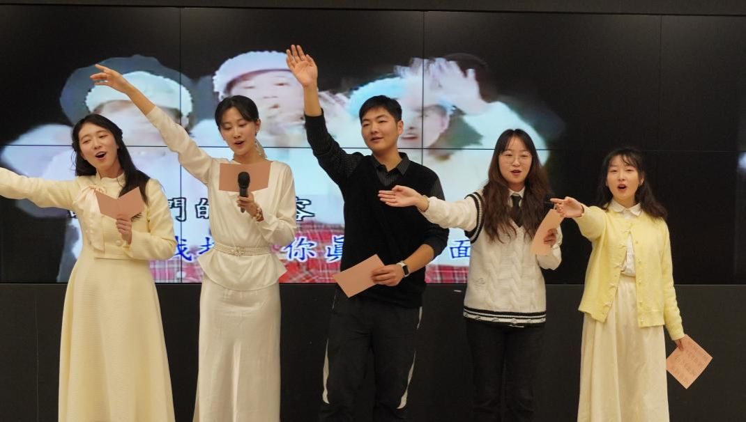 颁奖现场,新一届“大钟奖”获奖同学还带来了才艺分享,载歌载舞,其乐融融。学院研究生合唱《明天会更好》,将典礼氛围推向高潮。