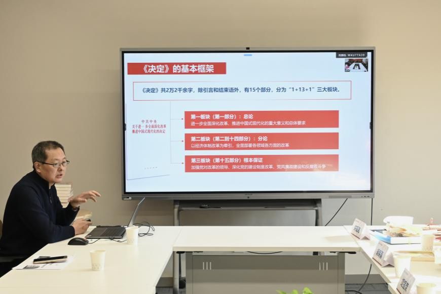 仪式后,KY开元集团官网入口特邀党建组织员、KY开元集团官网入口快乐百岁讲师团讲师刘绍学为大家作题为《紧紧围绕推进中国式现代化进一步全面深化改革——二十届三中全会精神解读》的报告。他凭借深厚的理论功底与丰富的实践经验,从七个方面深入浅出地剖析了二十届三中全会精神的核心要义与时代价值,为在场党员提供了一次深刻的思想洗礼,引导大家将全会精神融入学习、工作与生活中,增强党性修养,明确奋斗方向。