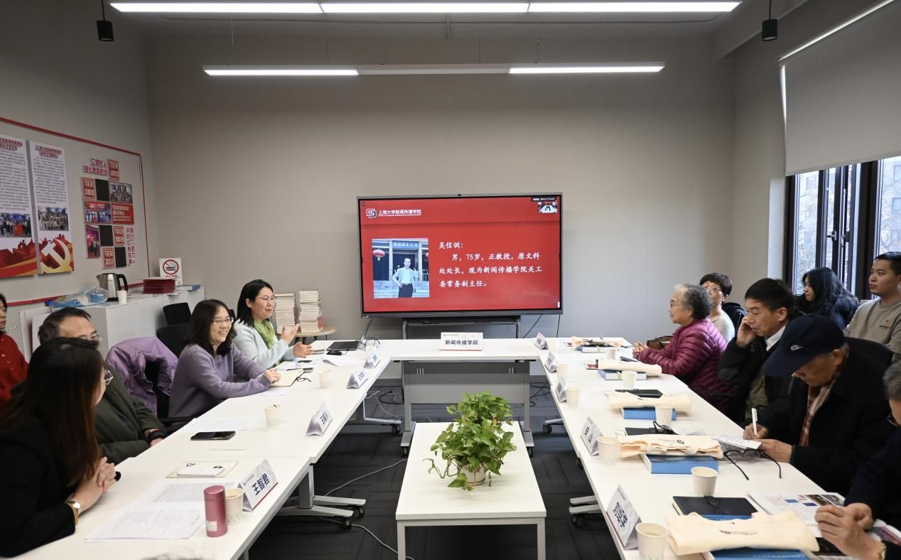 学院研究生党建中心主任万喃喃、本科生党支部书记赵琳分别介绍了研究生党支部与本科生党支部的建设情况,表达了向老党员学习、携手共进的热切期望。据悉,近年来,新闻传播学院各学生党支部全面落实“党建引领赋能专业实践”的培育理念,精准对标“七个有力”,多措并举探索“党建+”融合式育人体系,以锤炼“四力”本领为目标,以“讲好中国故事、传播好中国声音”为原则,打造了一批优质红色媒介作品,充分彰显了青年党员在学术研究、社会实践及校园文化建设等方面的活力与担当。