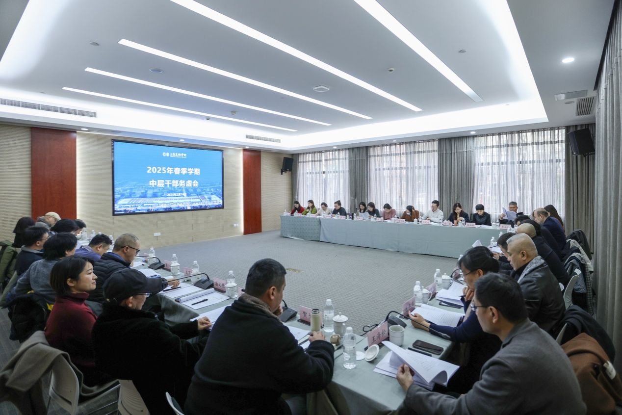 2月14日,上海美术学院召开2025年春季中层干部工作务虚会。本次会议是在全院上下深入学习贯彻党的二十大、二十届三中全会以及全国教育大会精神背景下召开的。2025年正值“十四五”规划收官之年和“十五五”规划制定的战略窗口期,为进一步落实好学校第四次党代会精神,激发中层干部“追卓越、创一流”活力,上海美术学院召开本次会议。