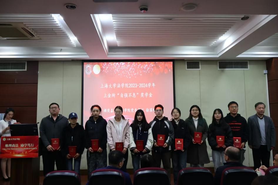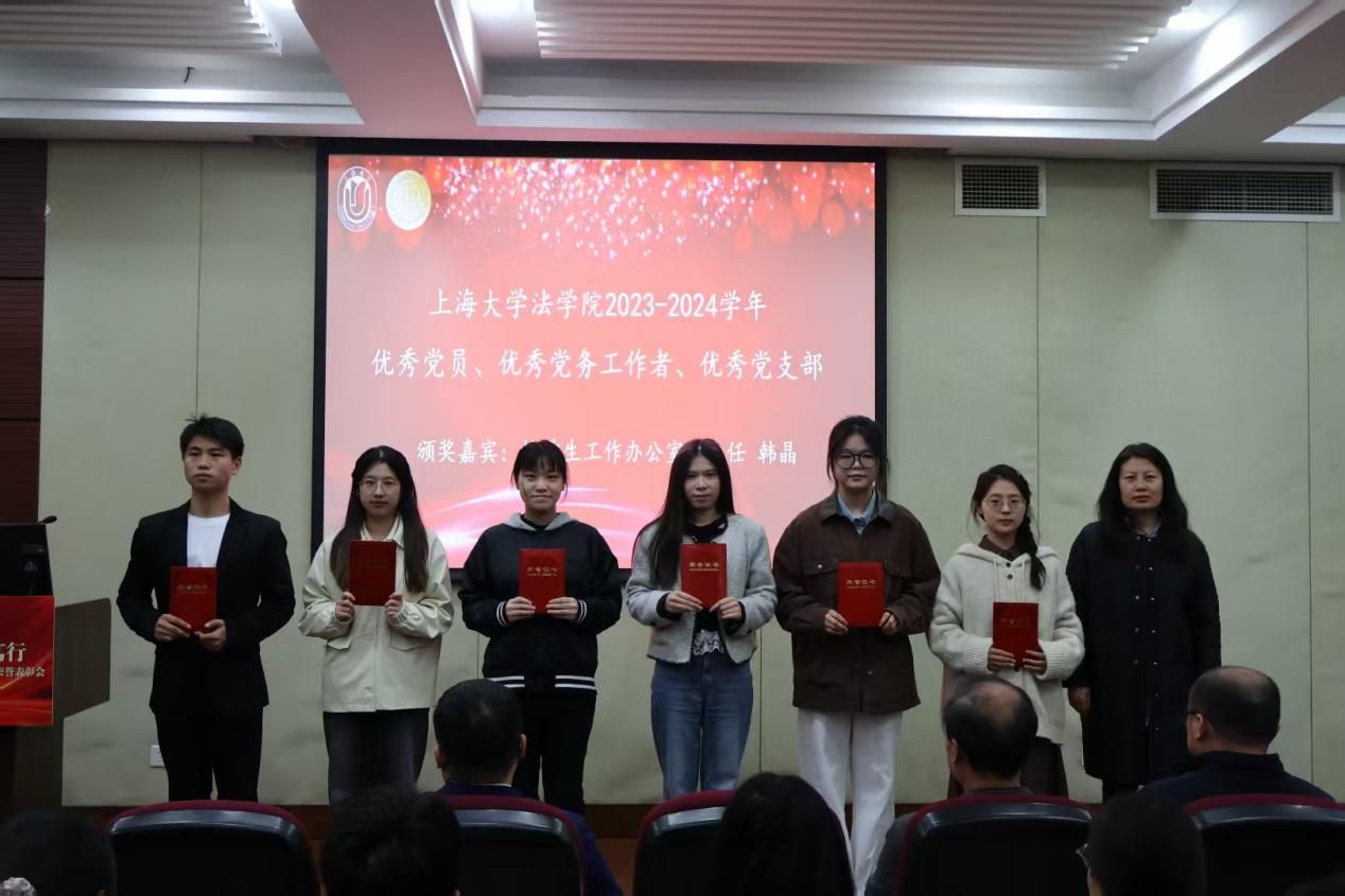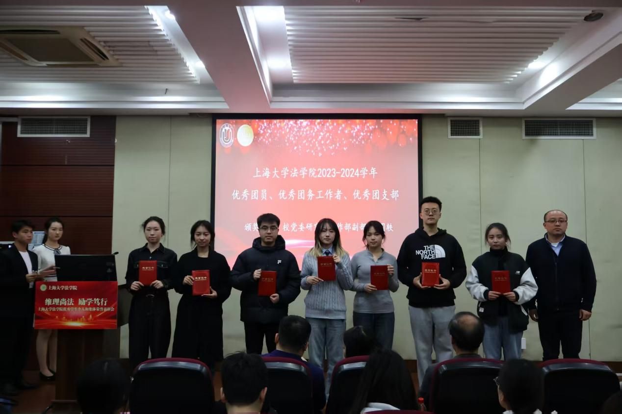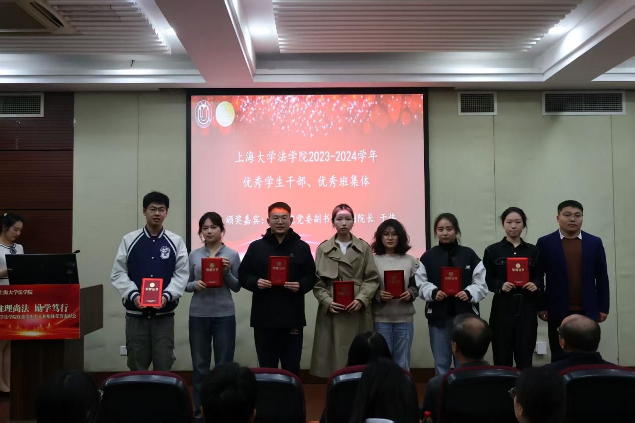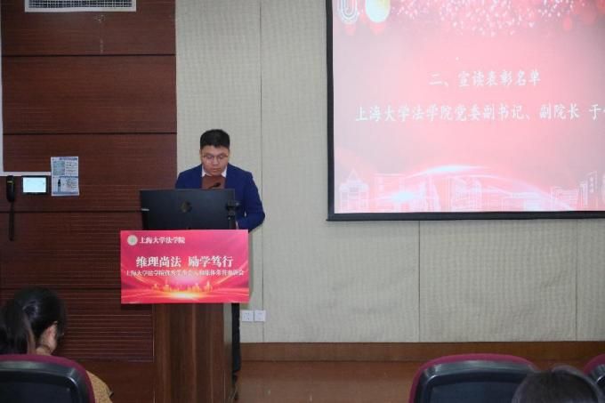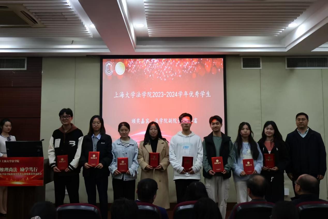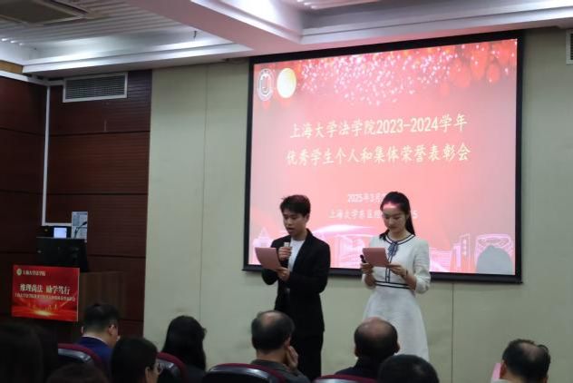 3月28日下午,法学院在宝山校区经管大楼115室举行2023-2024学年优秀学生个人和集体荣誉表彰大会。KY开元集团官网入口学生工作办公室副主任韩晶、KY开元集团官网入口党委研究生工作部副部长周轶,KY开元集团官网入口法学院党委书记徐国明,法学院二级教授文学国,法学院党委副书记、副院长于伟,法学院副院长、知识产权学院院长袁真富以及学院各年级的辅导员老师、获奖学生以及各年级学生代表参加表彰大会。本次表彰大会由法学院研究生王睿思和本科生严嘉轩同学主持。