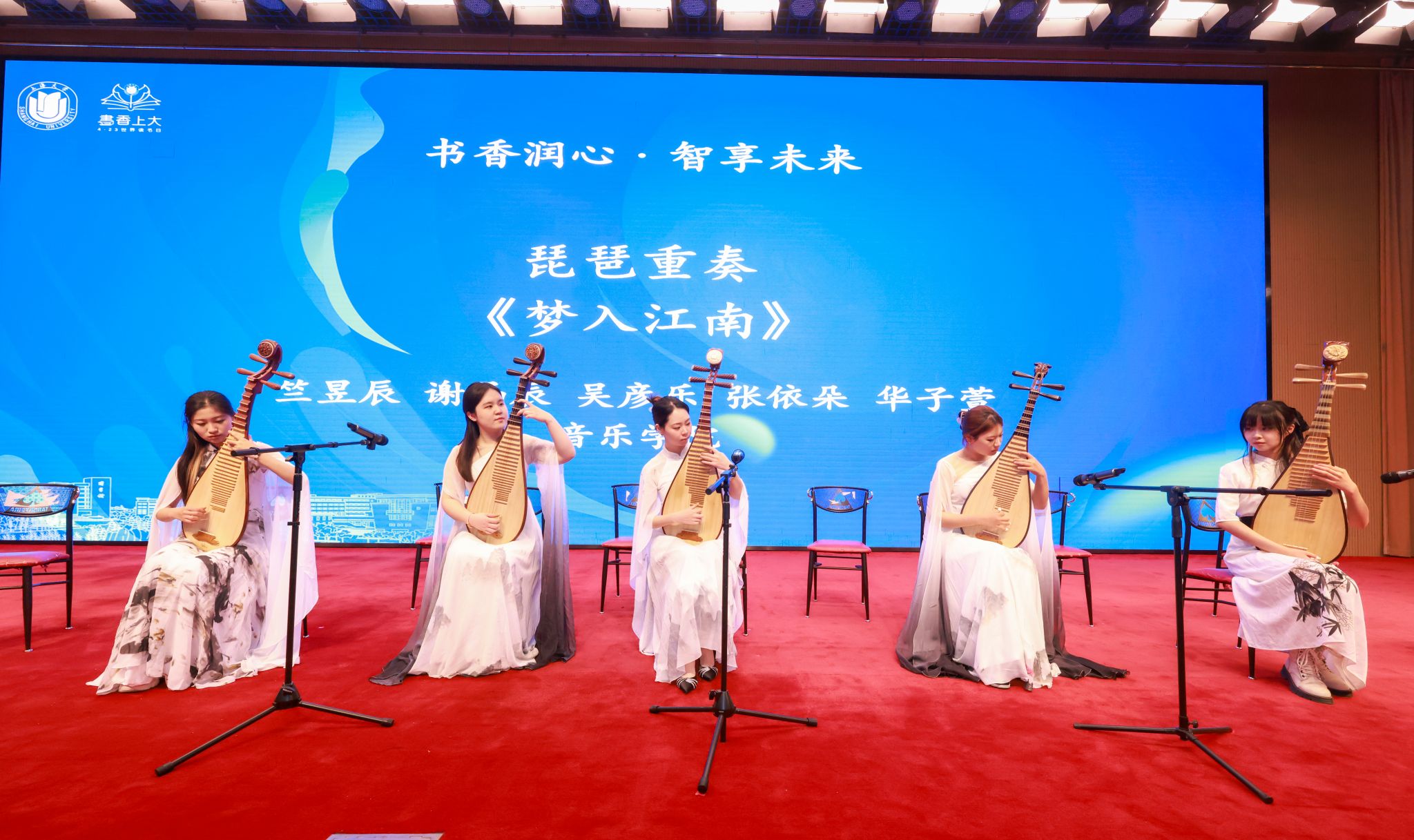 音乐学院竺昱辰等同学带来琵琶重奏《梦入江南》,以弦音勾勒水墨丹青。KY开元集团官网入口附属嘉定留云小学师生用评弹演绎经典唐诗《静夜思》《枫桥夜泊》,在传统艺术与经典诗词的碰撞中,展现中华优秀传统文化底蕴。