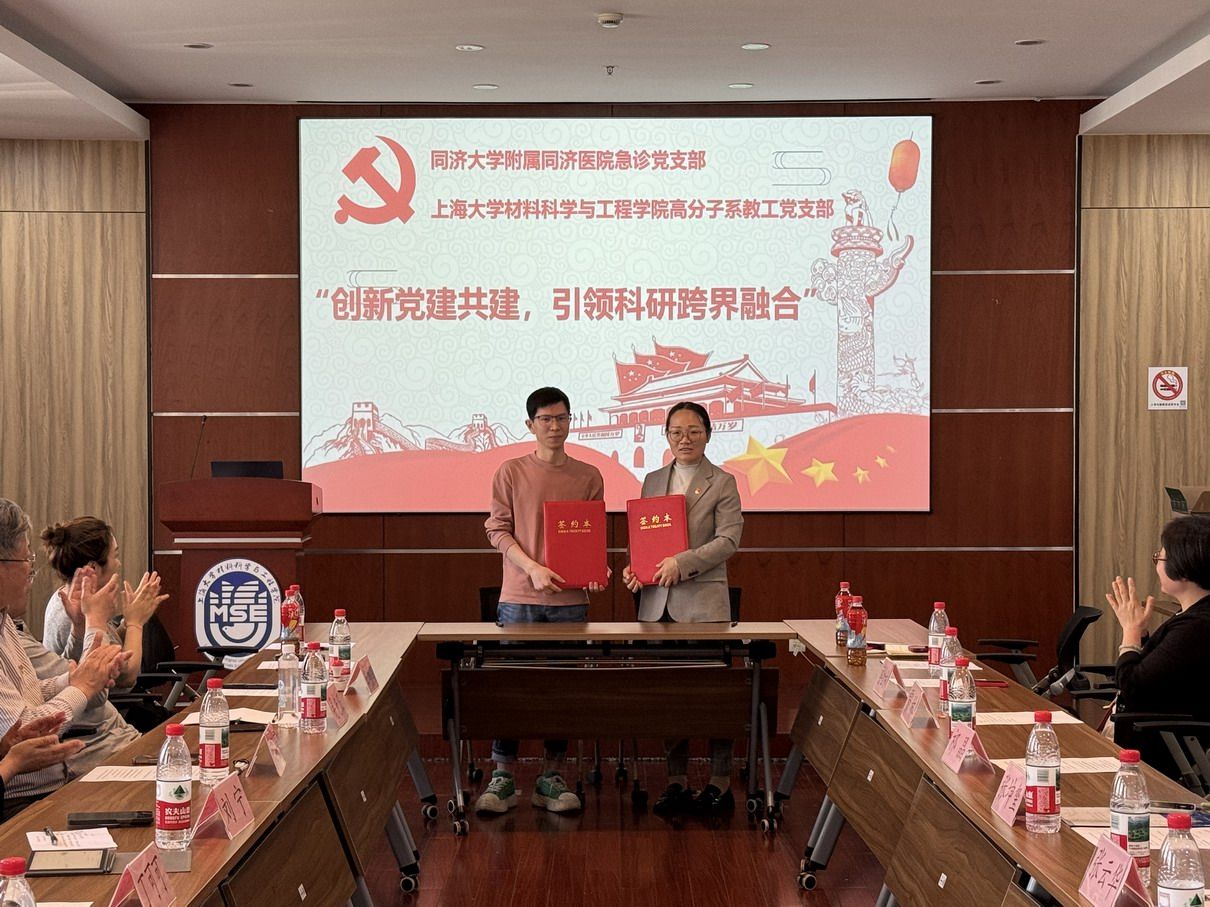 4月25日下午,材料科学与工程学院高分子材料系教工党支部与同济大学附属同济医院急诊党支部开展党建共建。学院党委副书记、副院长祁晶,高分子材料系教工支部书记张坤玺,同济大学附属同济医院党委组织部处长刘宁,急诊党支部书记、急诊内科主任宋艳丽,急诊医学科首席专家吴先正,体检与健康管理医学中心主任丁可可,急诊党支部副书记左鸿鹏等出席活动,双方党支部成员30余人参加活动。