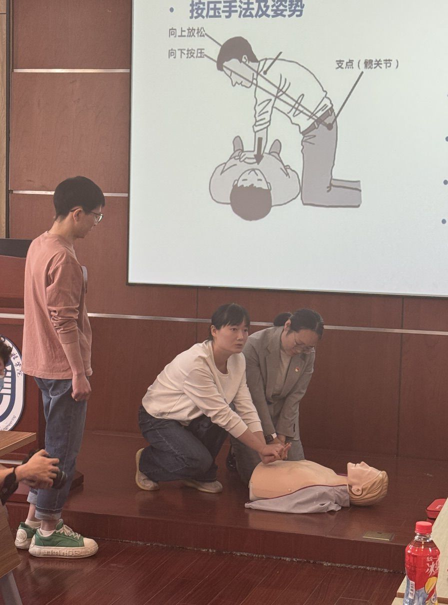 同济医院急诊党支部党员同志们现场讲解并示范心肺复苏相关急救常识和技能,不仅让支部党员和高分子系师生了解心肺复苏原理和重大意义,通过现场实操掌握心肺复苏技能,同时让大家拥有成为“生命守护者”的能力,让“敢救、会救”成为社会常态,践行共产党员模范带头作用。