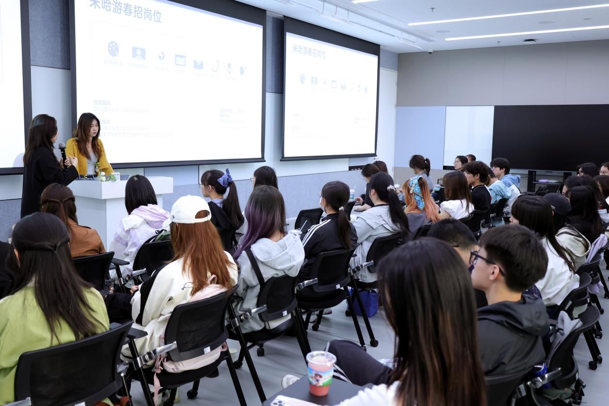 参观完毕后,师生们来到会议室与米哈游HR阿金老师和小莹老师进行面对面交流。她们为师生们准备了“米咖”的饮品及精美的《绝区零》角色立牌作为伴手礼。大家落座后,小莹老师从米哈游创办至今的发展讲起,为大家介绍了米哈游的产品信息、技术实力、社会责任、国际影响、工作氛围及校招培养等内容。同学们通过分享感受到米哈游的活力与温暖,同时也了解到其在科技和国际化上的强大实力。在Q&A环节,阿金老师与同学们展开了积极友好的交流问答。同学们的问题涉及应届就业、校招笔试、国际招聘、简历要求等各项内容,阿金老师均予以了细致解答。此后,应届的本科生和研究生同学带着自己的简历与HR老师们现场沟通,HR老师认真阅读同学们的简历,为之答疑解惑。至此,本次活动迎来尾声。