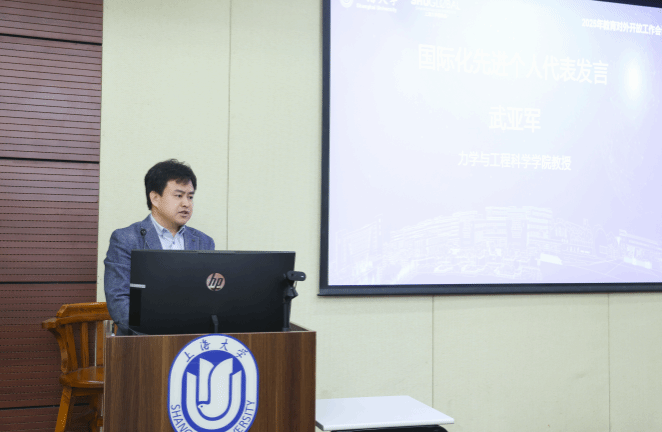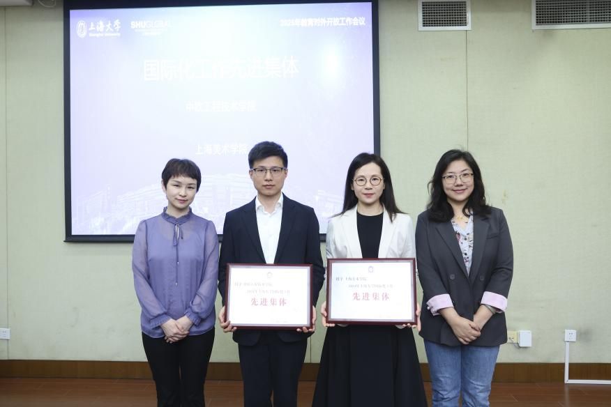 会上,首先表彰了2024年学校国际化工作先进个人、先进集体和特殊贡献奖。悉尼工商学院挂职副院长蔡震尧、上海电影学院外事秘书王天翼、力学与工程科学学院武亚军、机电工程与自动化学院外事主管徐丹萍获得国际化工作先进个人奖;中欧工程技术学院、上海美术学院获得国际化工作先进集体奖;微电子学院中瑞先进技术研究院团队、生命科学学院执行院长肖俊杰获得国际化工作特殊贡献奖。