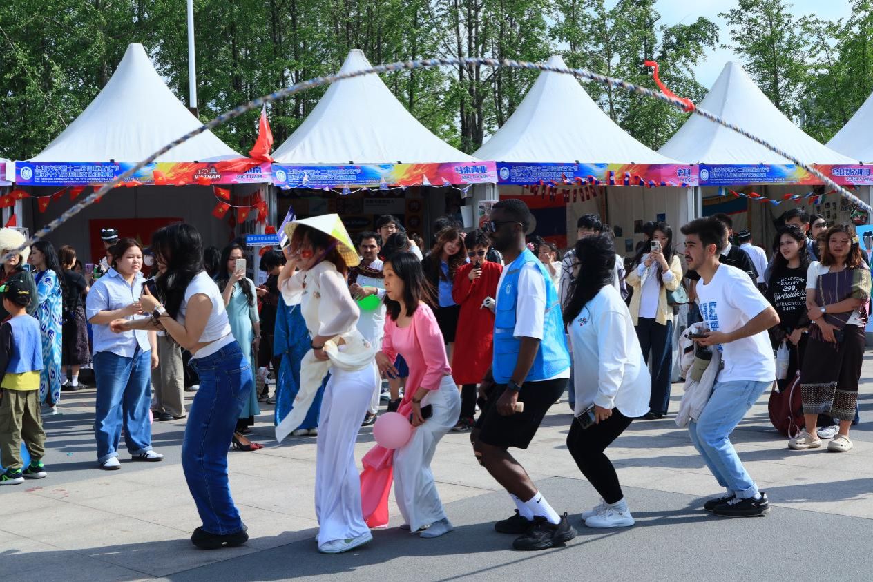 各国学生代表身着本国传统服装入场,带来了一场绚丽多姿的“世界服装秀”,织就流动的文明图谱。