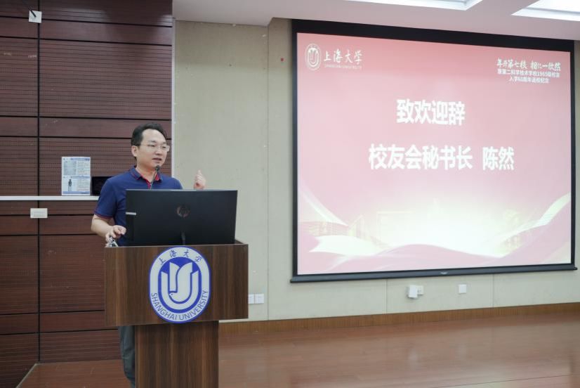 对外联络处处长、校友会秘书长陈然致欢迎辞。他首先转达了校党委书记、校友会会长成旦红,校党委副书记、副校长胡大伟对校友们的问候,并向大家介绍了上大的红色基因及“科二”与上大的血脉渊源。他表示,母校及校友会始终怀着“上善若水、海纳百川、大道明德、学用济世”的大学精神,敞开怀抱,欢迎四海校友归家!