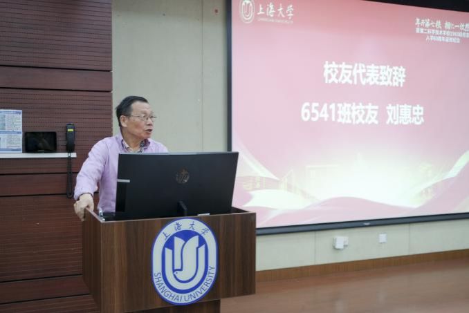 1965级校友刘惠忠、朱克成作为校友代表发言。刘惠忠校友回顾了本次返校活动的发起和筹备历程,感谢筹备组和母校校友会工作人员的辛苦付出。朱克成校友以今日母亲节佳期,感谢母校培养关怀。