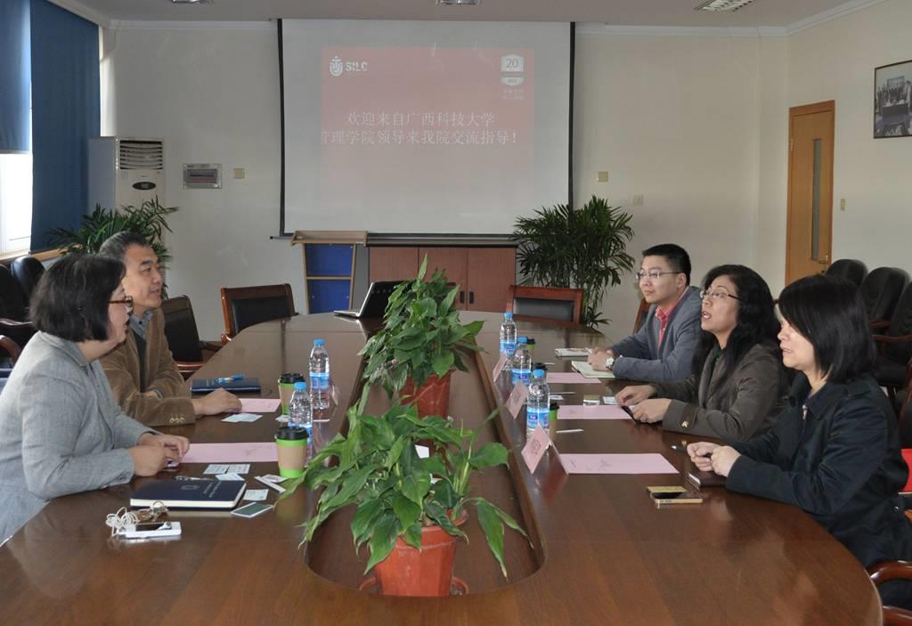 马璐则介绍了广西科技大学管理学院的历史沿革、地区优势和近期发展中面临的问题,表示希望在研究生、本科生培养、加强国际交流等方面谋求两院开展合作的途径,还对人员管理、国际交流等方面提出了感兴趣的问题。胡笑寒着重向来访者介绍了学院教学工作特别是教学质量保障体系方面独到的经验,引起了来宾很大的关注。