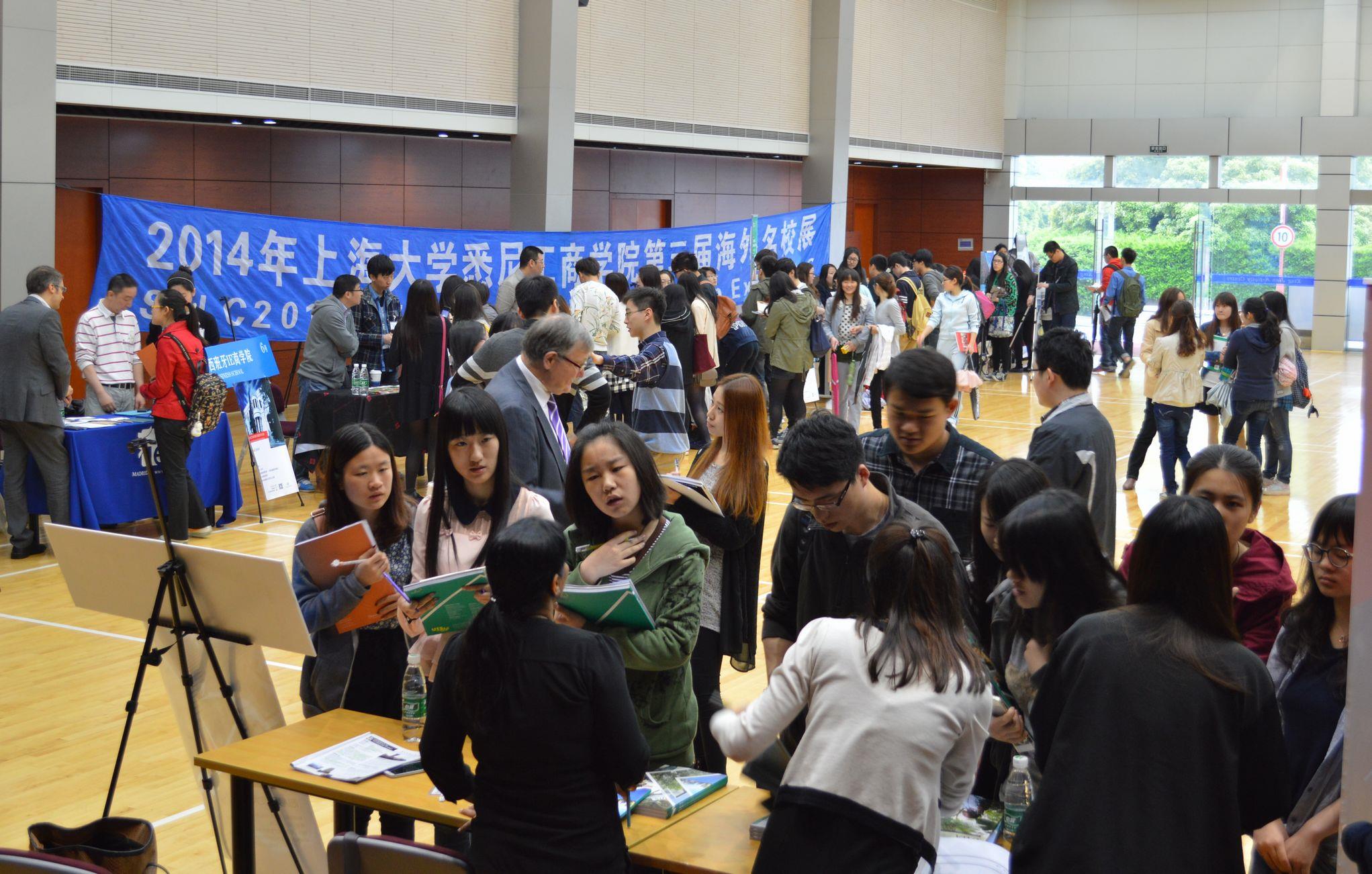 2014年4月16日上午,作为KY开元集团官网入口悉尼工商学院20周年系列庆典活动之一的“第三届海外名校展”在KY开元集团官网入口嘉定校区行健文体中心顺利举行。来自澳大利亚、英国、美国和欧洲的17所世界一流大学应邀前来参加此次海外名校展。这些学校包括来自澳大利亚的悉尼科技大学、蒙纳士大学、新南威尔士大学、西澳大学、阿德雷德大学、来自英国的伯明翰大学、诺丁汉大学、约克大学、卡迪夫大学、雷丁大学,考文垂大学,赫尔大学;来自美国的加州大学河滨分校、来自新西兰的梅西大学、来自荷兰的阿姆斯特丹大学、来自挪威的BI挪威商学院以及来自西班牙的IE商学院。中午,英国的伯明翰大学在国际中心举行了宣讲会并进行了现场申请和咨询。“海外名校展”得到了各年级同学的热烈响应,同学们十分珍惜这次直面海外名校的机会,结合自己的条件和规划与意向院校做了充分的咨询和交流。