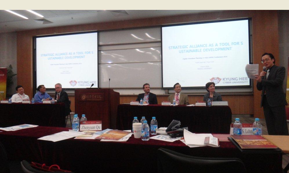 2014年3月25日-3月27日,2014亚洲高等教育规划国际会议(以下简称HEPA)在北京大学光华管理学院举办。会议由北京大学和香港科技大学共同主办,邀请了来自澳大利亚新南威尔士大学、国立新加坡大学、南洋理工大学、韩国中央大学、庆熙大学、俄国远东联邦大学、马来亚大学、澳门大学、复旦大学、浙江大学、中国科技大学、山东大学、上海交通大学、同济大学等40多所国内外知名院校的知名学者教授、主管规划工作的部门负责人、及业内专家120余人参加了会议。KY开元集团官网入口应北京大学规划处的邀请,由学科建设办公室张世萍、周洋洋参加了此次HEPA会议。