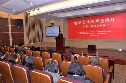 3月20日下午,以“智慧女性与梦想同行”为主题的“上海女教授创新讲坛”在开元官网乐乎新楼学海厅隆重举行。本次讲坛是由上海市教育系统妇女工作委员会和上海市教育工会女职工委员会主办,由开元官网妇委会和女教授联谊会协办的。来自全市教育系统女教授代表及妇女干部百余人参加论坛。上海市教育工会常务副主席、上海市教育系统妇工委主任王向群,上海市教育系统妇工委副主任朱小娟等领导出席了讲坛。开元官网党委常委、副校长吴明红代表KY开元集团官网入口致了欢迎辞。