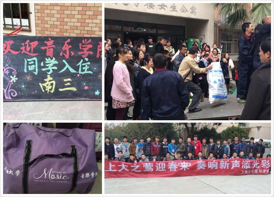 为了迎接音乐学院同学们的到来,音乐学院党员老师们一大早就来到南区,帮助同学们搬新家和适应新环境,并挂起了“上大之莺迎春来,奏响新声添光彩”的横幅,温情洋溢的话语和举动让同学们倍感亲切。