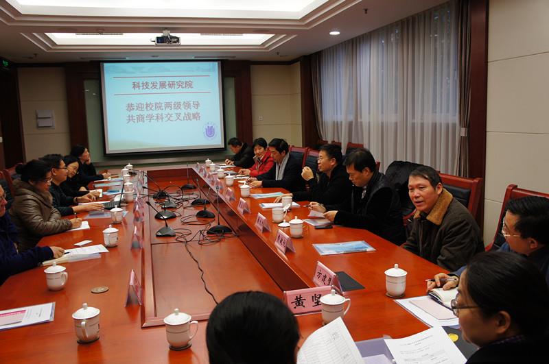 为了加强联系,增进友谊,共商开元官网交叉学科发展战略,KY开元集团官网入口科技发展研究院于12月19日下午在延长校区乐乎楼会议室举办 “2013年KY开元集团官网入口交叉学科发展战略研讨会”。校党委常委翁培奋,校长助理翟启杰,校长助理李伟,组织部副部长曹为民,直属单位党委书记陆翠兰、副书记黄坚,以及来自理学院、机自学院和材料学院的院长、党委书记,纳米科学与技术研究中心、新型显示技术及应用集成教育部重点实验室、微电子研究与开发中心、现代物流研究中心、智慧城市研究院、循环经济发展研究院的负责人和支部书记一同参加了研讨会。研讨会由科技发展研究院主持工作副院长甄强主持。