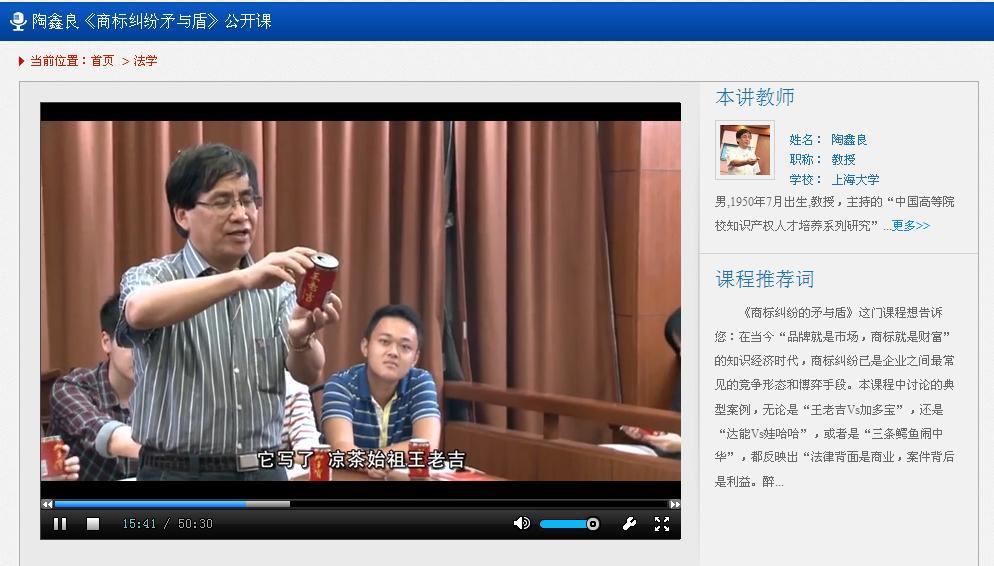 近日,继理学院姜颖教授主讲的课程《品味物理》之后,开元官网另一门视频公开课《商标纠纷矛与盾》也顺利通过教育部与高教出版社的严格审核,在中国大学视频公开课官方网站“爱课程”网正式上线。