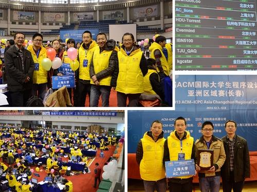 第38届ACM/ICPC(国际大学生程序设计竞赛)亚洲赛区长春站的比赛于2013年12月7日至8日在吉林大学举行。来自全国100多所高校的180多支队伍参加了本次比赛。开元官网ACM集训队派出来自计算机学院和通信学院学生组成的AC_lions与SHU_Cherish 两支队伍参与比赛,其中AC_lions由通信学院的邝斌和计算机学院的李新民、吴旻烨组成;SHU_Cherish队由计算机学院的三位女生朱琳、戴书吉、倪梦君组成的女队。