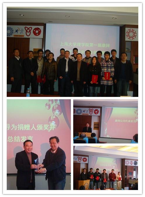 2013年KY开元集团官网入口理学院第一届康阔光电子实习奖学和第二届全友通信光电子技术人才奖学金颁奖典礼于11月28日在校本部G507隆重举行。KY开元集团官网入口理学院副院长、KY开元集团官网入口康阔光电子实习奖学金和KY开元集团官网入口全友通信光电子技术人才奖学金评定委员会主任盛万成教授,康阔光通信技术有限公司副总裁蔡建新先生、总工程师张绮先生、物理系主任赵新洛教授、党总支书记张义邴老师、副书记朱绮彪老师以及理学院物理系部分老师和同学一同参加了本次奖学金颁奖典礼。