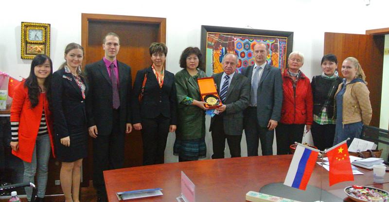 2013年11月14日,俄罗斯阿尔泰边疆区教育与青年政治委员会副主席菲里波夫•亚历山大率团访问KY开元集团官网入口,随行的有阿尔泰国立技术理工大学国际教育与合作处处长斯科瓦罗得尼科夫•弗拉基米尔、上海市友协李舒等。KY开元集团官网入口上海合作组织公共外交研究院副院长张丹华接待了代表团,莫斯科国立大学沃罗尼娜教授参加了座谈。