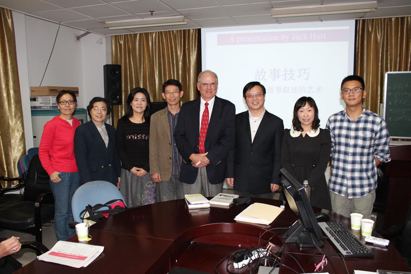 2013年10月31日下午,美国著名创意写作教授杰克·哈特应KY开元集团官网入口文学与创意写作研究中心邀请,来KY开元集团官网入口文学院A楼602做“故事——非虚构故事叙述的艺术”的讲座。陈鸣副教授主持了讲座,文创中心教师及全体创意写作专业研究生、写作爱好同学出席。讲座圆满顺利,现场气氛热烈。杰克·哈特教授还从自己的创作经验出发,与上大文创中心师生就叙事性非虚构、纪录片叙事、作家培养途径以及多线性复杂叙事等问题进行了热烈讨论,并“爆料”了多位普利策获奖人的创作过程与背后的故事。非虚构文学写作如今已经成为美国文学的一个重要形式,掌握非虚构文学故事的写作技巧对于创意写作专业学生更是必不可少的,哈特先生的此次讲座让上大文创中心师生都受益匪浅。