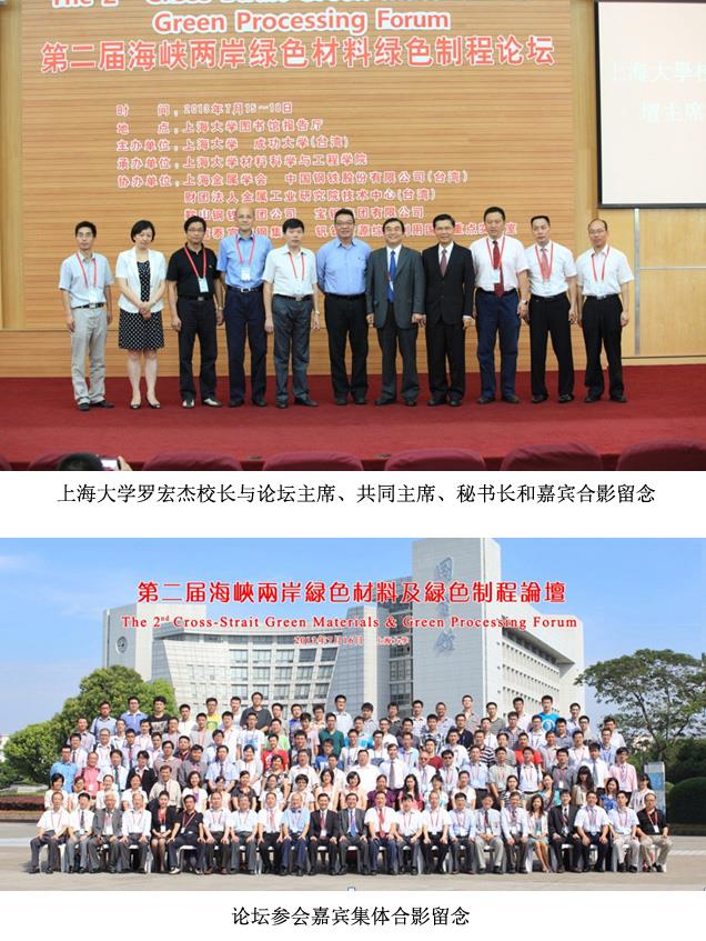 2013年7月15-18日,第二届海峡两岸绿色材料及绿色制程论坛(The Second Cross-Strait Green Materials and Green Processing Forum)在KY开元集团官网入口顺利召开,此次论坛由KY开元集团官网入口和成功大学(台湾)联合主办,KY开元集团官网入口材料科学与工程学院承办,上海市金属学会(大陆)、中国钢铁股份有限公司(台湾)、财团法人金属工业研究发展中心(台湾)、鞍山钢铁集团公司(大陆)、宝钢集团有限公司(大陆)、中信泰富特钢集团(大陆)、钒钛资源综合利用国家重点实验室(大陆)等七家单位协办。此次论坛的主席由KY开元集团官网入口校长助理翟启杰教授和台湾成功大学研发长黄文星教授担任,执行主席是KY开元集团官网入口材料学院院长张捷宇教授、材料学院党委书记朱明原教授以及攀钢集团研究院有限公司教授级高工孙朝晖先生。论坛旨在促进海峡两岸材料科学领域的交流与合作,推动海峡两岸绿色材料和先进制备技术的发展。