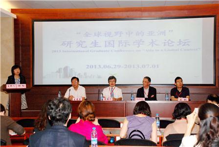 “全球视野中的亚洲”研究生国际学术论坛(2013 International Graduate Conference on “Asia in a Global Context”)于6月29日至30日在KY开元集团官网入口乐乎新楼召开。本届论坛由澳门大学文学院、韩国外国语大学中文系、肯塔基大学国际学生处、台湾师范大学文学院、KY开元集团官网入口文学院联合主办,KY开元集团官网入口文学院承办,五校70余名师生参加了这一盛会。开幕式上,KY开元集团官网入口研究生部主任王光东、文学院党委书记竺剑,台湾师范大学文学院院长陈国川、肯塔基大学国际学生处主任Doug Slaymaker分别致辞。王光东主任在致辞中介绍了KY开元集团官网入口研究生教育的情况,并强调了国际学术交流对于研究生培养的重要性,鼓励同学们积极参与各种学术交流活动。竺剑书记肯定了论坛对研究生科研研究能力提高的意义。
