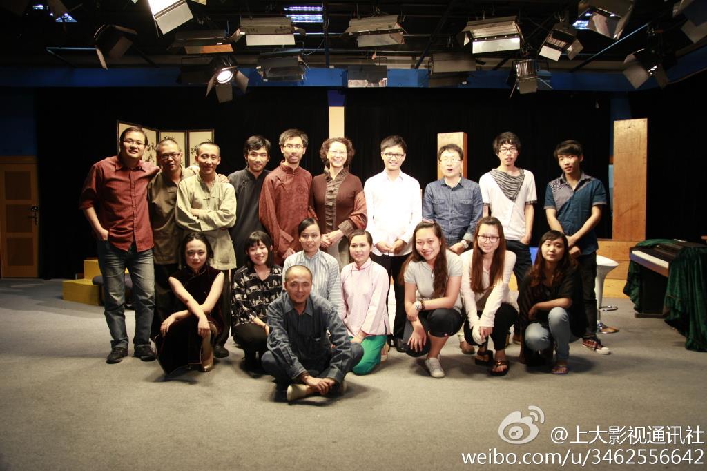 (上大影通社讯记者伍俊)6月8日晚,影视学院11级本科编导专业表演课期末汇报演出,第一小组的作品在二教4楼演播厅举行。该小组表演了四幕完整的经典话剧《雷雨》,导演杨春华,指导老师刘延刚。尽管现场布景简单、舞台区域略感拥挤,然而,表演场地的窘促,并没淹没同学们精彩的表演,这些几乎都是首次出演话剧的大二同学表现可圈可点。演毕谢幕,为数不多的在场观众给予了持久的掌声。刘海波老师激动地表示演出“大大超出了他的意料”,并表示同学们动情的表演,曾几度惹他飙泪,勾起了他大学时代的回忆。在场的陈晓达老师则点评道,同学们不仅成功地完成了表演课程,通过演出的磨合,在灯光、摄像、布景等属于演播室课程的内容上也表现得十分出彩。