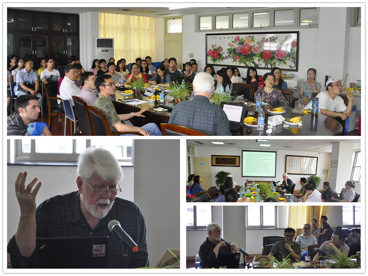 在Brian McLaughlin教授的智慧引导下,大家进入了一个关于心灵哲学与认知科学的知识世界。Brian教授沿着历史的脉络对身心问题的发展进行了解读。首先,他介绍了有关身心问题发展的历史渊源。从创世纪中上帝告诉亚当“你本是尘土,仍要归于尘土”入手阐述了物理主义的观点,沿着这条路径,教授又介绍了从古希腊到中世纪再到当代的有关身心问题的重要的哲学家及其他们的观点、理论,例如:身心交互理论、身心平行论、身心等同论、中立一元论等,并重点解读了柏拉图的“身心分离论”,笛卡尔的“实体二元论”、莱布尼茨的“预成和谐论”等。之后Brian教授指出,随着物理学、生物学、神经科学等的发展,又发展出了行为主义、计算主义、功能主义、强人工智能等多种哲学路径,同时,他以幽默风趣的语言介绍了巴普洛夫经典条件反射实验、图灵机等。最后,教授提出了两个关于人工智能的问题共同探讨,社科院的张艳芬、张亚月、王天恩等老师提出了许多深刻的问题,而本科生欧阳曼同学也提出了自己的疑问,Brian教授睿智而详尽地对此一一做了解答。