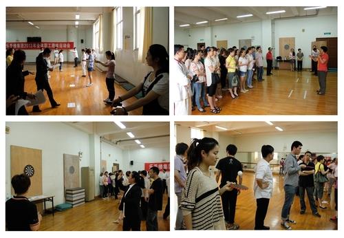 5月29日下午,乐乎楼集团在体育中心训练馆举行全体职工趣味运动会。出席运动会的领导有直属单位党委书记陆翠兰、乐乎楼集团总经理於延琴、直属单位党委副书记黄坚、乐乎楼集团副总经理程克坚等。运动会由乐乎楼集团工会主席成伟主持。集团来自各部门的70余名职工报名参加了运动会。