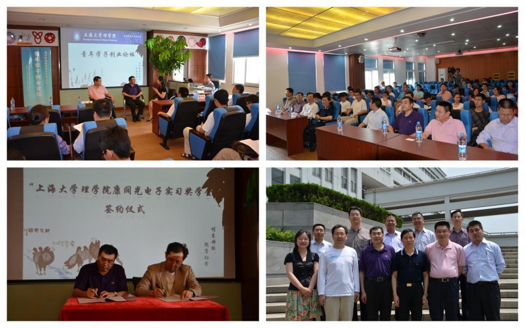 5月22日上午,KY开元集团官网入口理学院校友会活动之理学院青年学子创业论坛暨理学院康阔光电子实习奖学金签约仪式在G507隆重举行。理学院党委书记兼执行院长翁培奋、党委副书记黄颂翔、刘亮,副院长盛万成、物理系主任赵新洛、总支书记张义邴等院系领导,理学院物理系87届校友上海康阔光通信技术有限公司董事长黄勇、理学院物理系87届校友上海精密合金有限公司董事长虞维扬,以及理学院教师、研究生、本科生代表出席了活动。