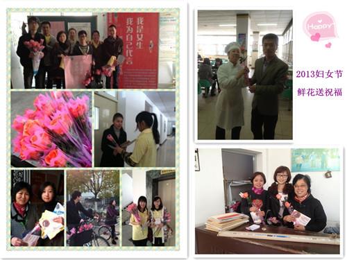 还有些送花小分队来到食堂和社区,把鲜花送给平日里默默为大家服务的阿姨们。收到鲜花的阿姨们个个喜笑颜开,成了节日里最美丽的天使。同学们还走进行政楼、校医院等,把这份特别的祝福带给各个部门的女老师们,以此来感谢她们的努力付出与真情奉献。