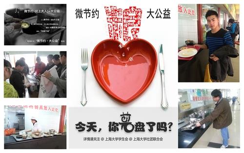 这两周,适逢KY开元集团官网入口冬季学期的考试周。尽管校园里充满着浓厚的学习氛围,但是一场强烈的“节约”风这几天已经悄然在上大校园中刮起。由KY开元集团官网入口学生会发起的“微节约 大公益”活动正式启动,同学们开始积极加入到上海市“校园光盘联盟”中去。