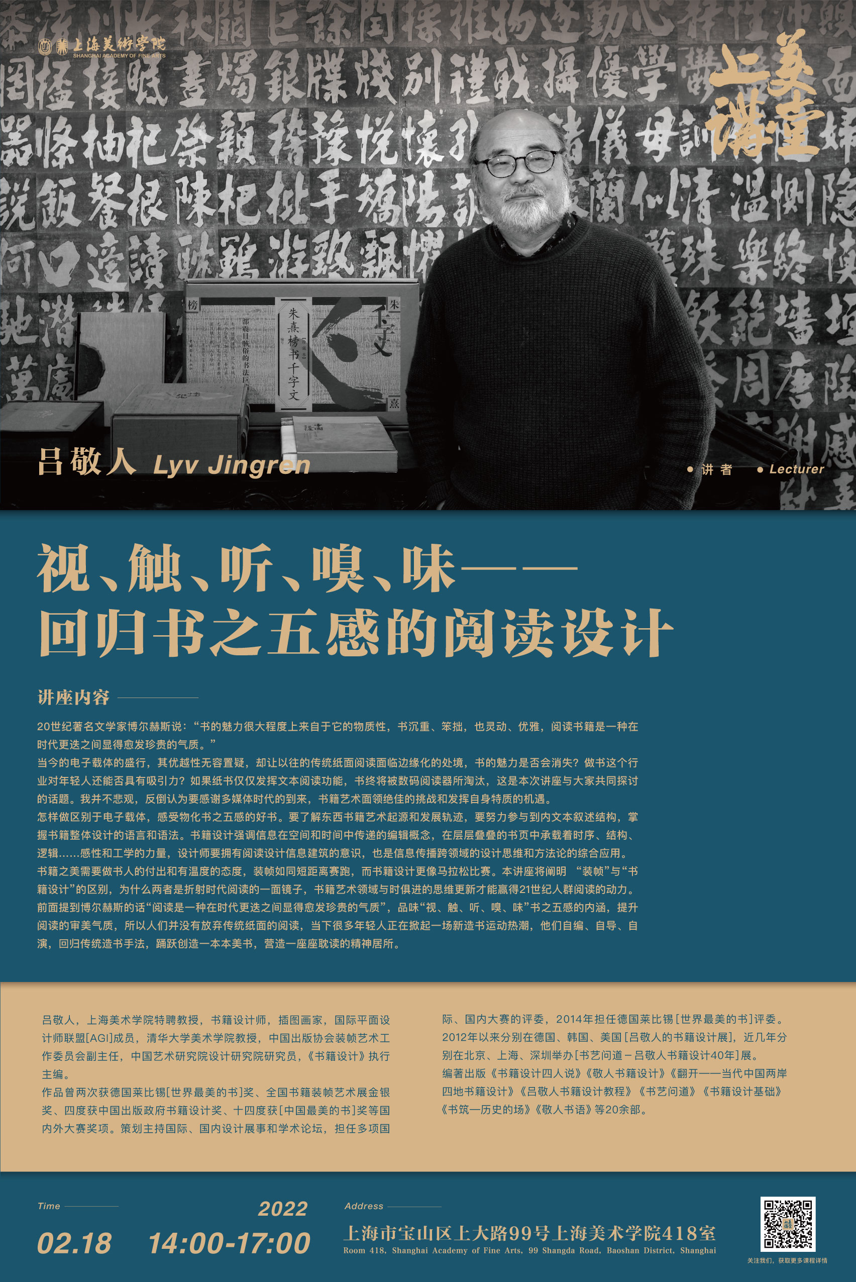 个人简介:吕敬人,1947年生于上海。书籍设计大师、插图设计大师、视觉艺术家,AGI国际平面设计协会会员。师从神户艺术工科大学院杉浦康平教授,现任清华大学美术学院教授,KY开元集团官网入口上海美术学院特聘教授。中国出版工作者协会书籍装帧艺术委员会副主任,全国书籍装帧艺术委员会副主任、中央各部门出版社装帧艺术委员会主任,中国美术家协会插图装帧艺术委员会委员。